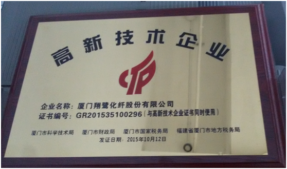 恭賀我司通過廈門市2015年第一批高新技術企業的認定自2015年3月至今,經過市省國家層層遞進的多方面審核,及公司各部門的積極配合,在多次完善資料后,我司通過高新技術企業的認定。在此也感謝公司領導的努力和各部門的配合和付出。 高新技術企業資格的認定,進一步肯定了我司的技術開發能力和自主創新、持續創新的能力,同時也進一步激發了企業自主創新的熱情,為公司面對激烈的競爭和多元化的市場變化格局帶來了新的機遇,為我司的市場競爭提供了強有力的支持。 我公司將再接再勵,充分發揮高新技術企業的帶動作用,提升企業和產品的競爭力,我司一直在努力,我們一直都是世界優質品牌的化纖供應者。