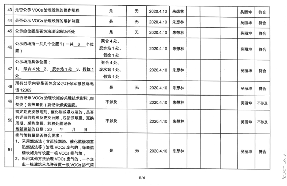 廈門市揮發(fā)性有機(jī)物污染防治企業(yè)自查表(2020年第二季度)