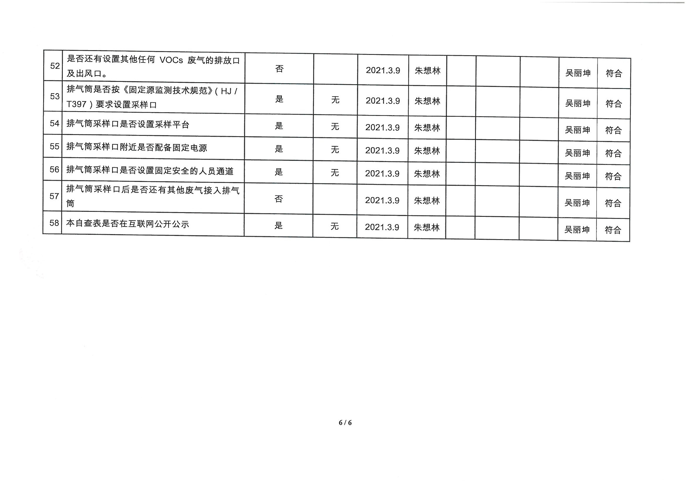 廈門市揮發性有機物污染防治企業自查表 (2021年 第一季度)