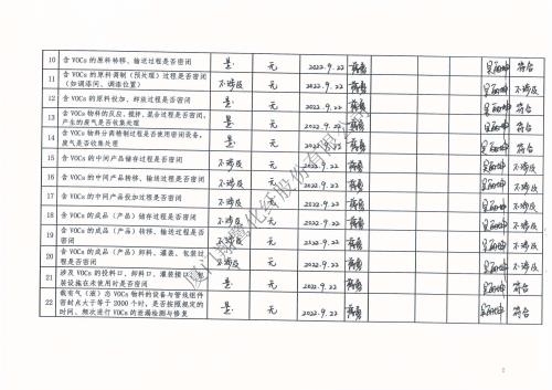 2022年第三季度揮發性有機物整治企業自查表